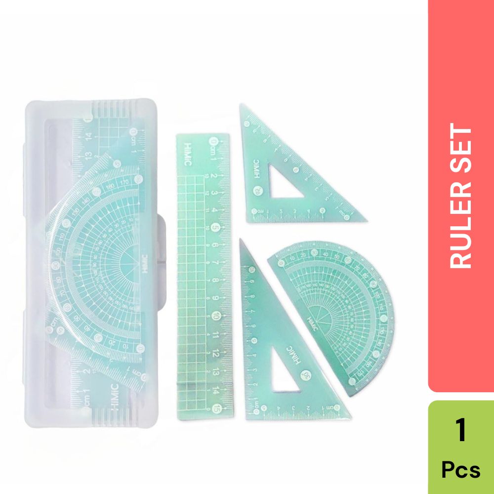 The Utsub Jelly Ruler Set is a 4-in-1 geometry kit featuring a unique transparent plastic design. Perfect for students, it includes a ruler, protractor, and set squares in a convenient storage box