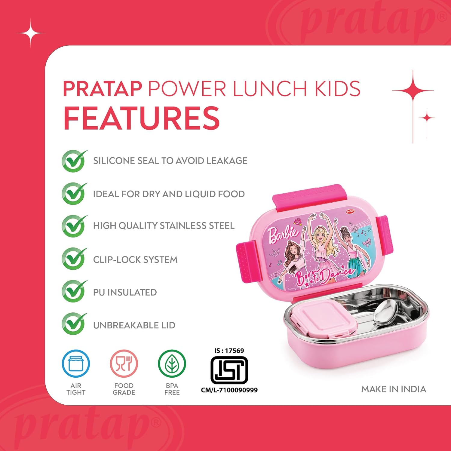 Make lunchtime fun and healthy with this Barbie-themed stainless steel insulated lunch box set. Includes 590ml & 120ml leak-proof containers with spoon – perfect for school, office, or travel!