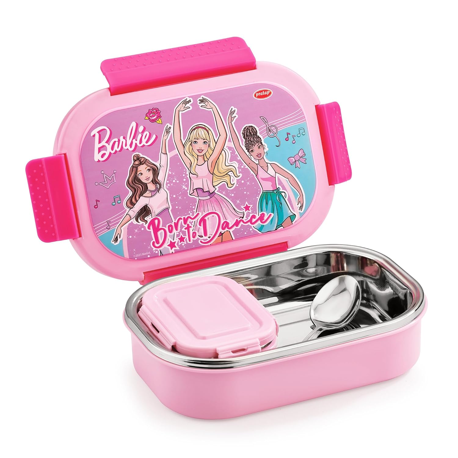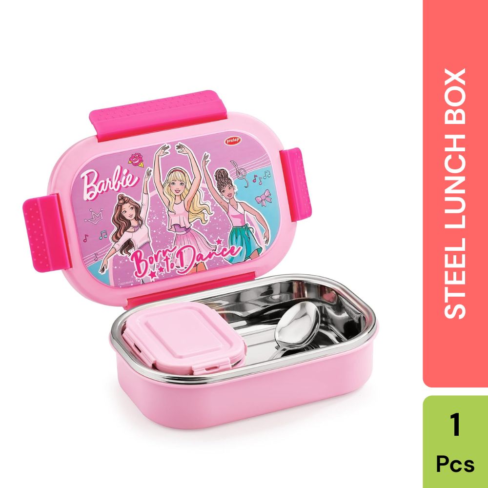 The compact design fits easily in any bag, while the leak-proof lids prevent spills. Comes with a convenient steel spoon. The attractive Barbie theme adds a fun touch, making it a great gift too! Color and design may vary depending on stock availability.