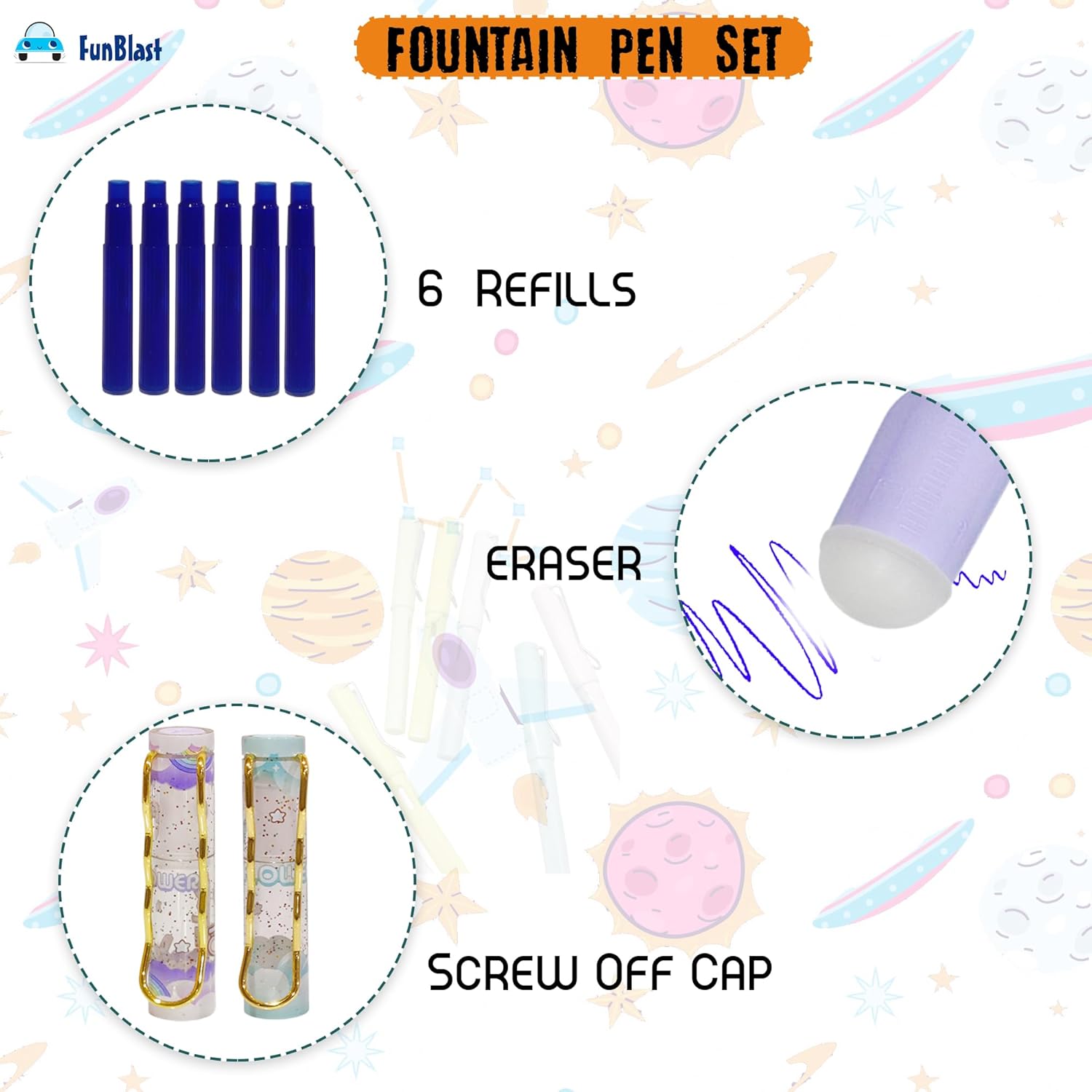 Fountain Pen for Students,Erasable Blue Ink Pen Set for School Gift For Kids,