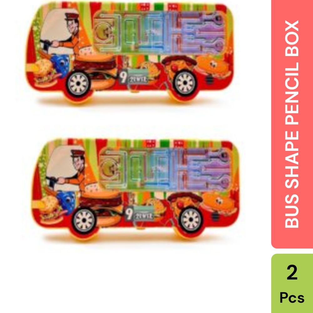 Maze Racer Bus Shape Plastic Pencil Box Pack Of 2