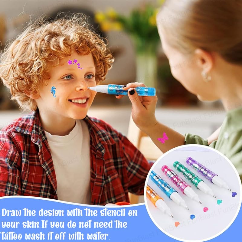 Add sparkle to your kid’s creativity! These glitter tattoo pens are safe, washable, and perfect for fun body art. Great for kids & adults!