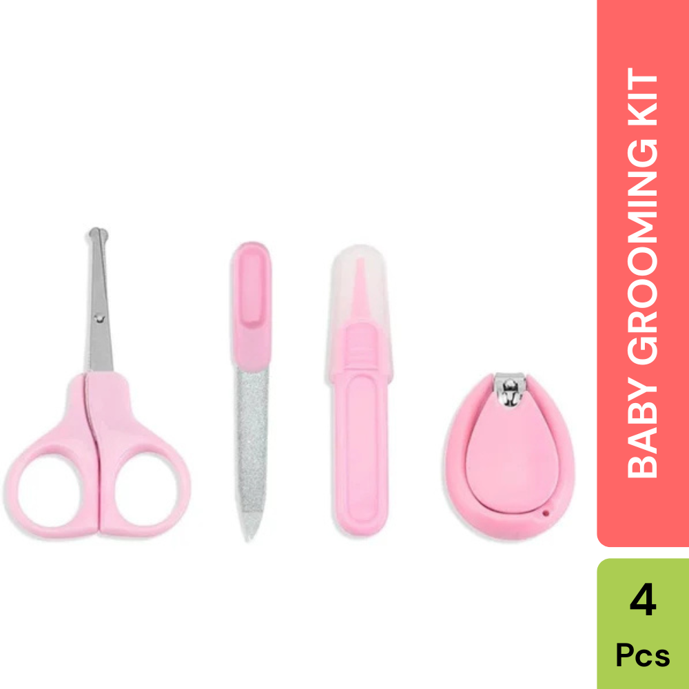 Compact and travel-friendly baby grooming kit with 4 must-have essentials. Gentle care for your baby’s nails, hair, and hygiene in a cute pink pouch.