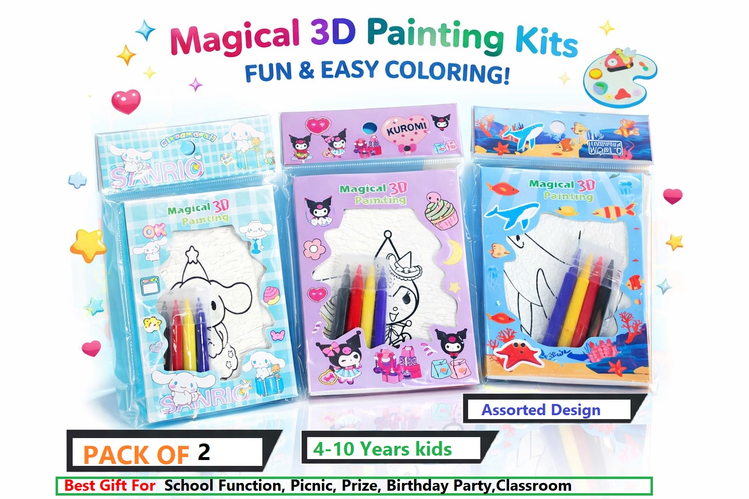 Utsub DIY 3D Foam Painting Art Kit – Creative Fun for Kids Best Return Gifts pack of 3